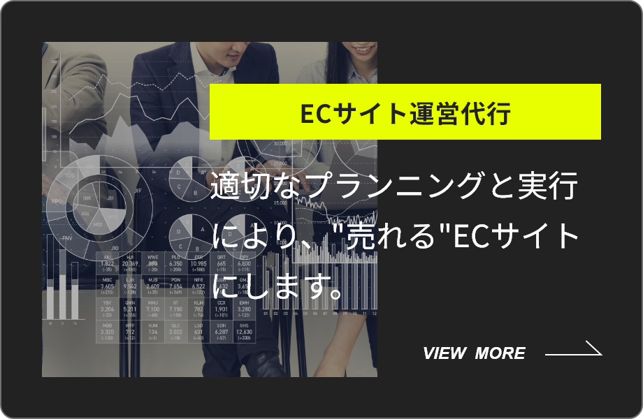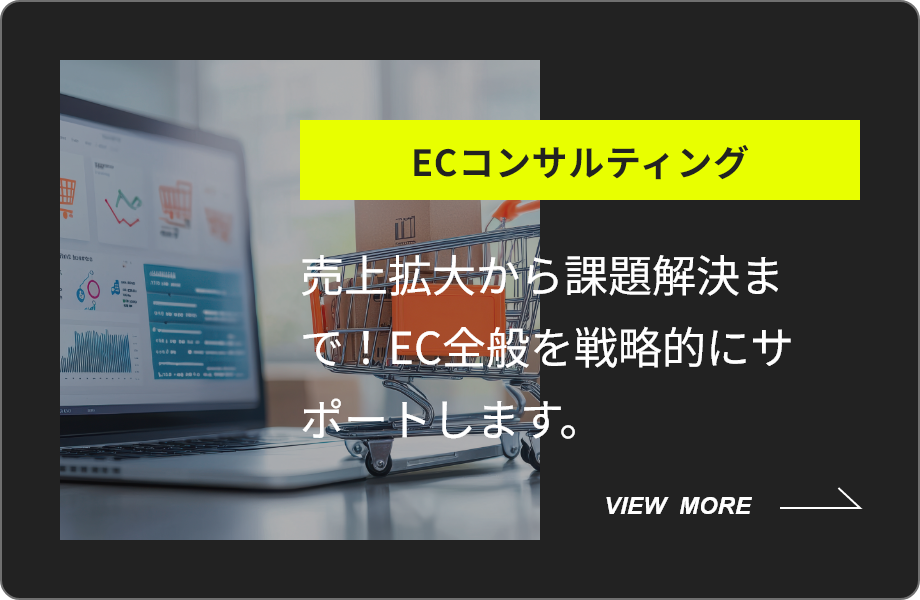 ECサイト制作から運用、物流、カスタマーサポートまで、あなたのEC運営を一気通貫で支援します。